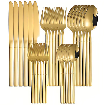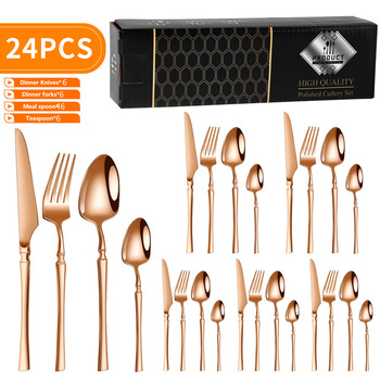 Juego de cubiertos de 24 piezas de acero inoxidable 1010 transfronterizo, cuchillo de bistec occidental de lujo, tenedor, cuchara, chapado en oro, regalo